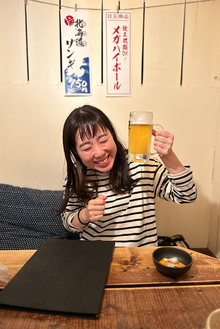 北海道でビールの美味しさに目覚めたそうです^^ 顔が物語るぅ〜〜