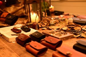 使う程に飴色に変化する白ヌメの革をキャンバスに見立て