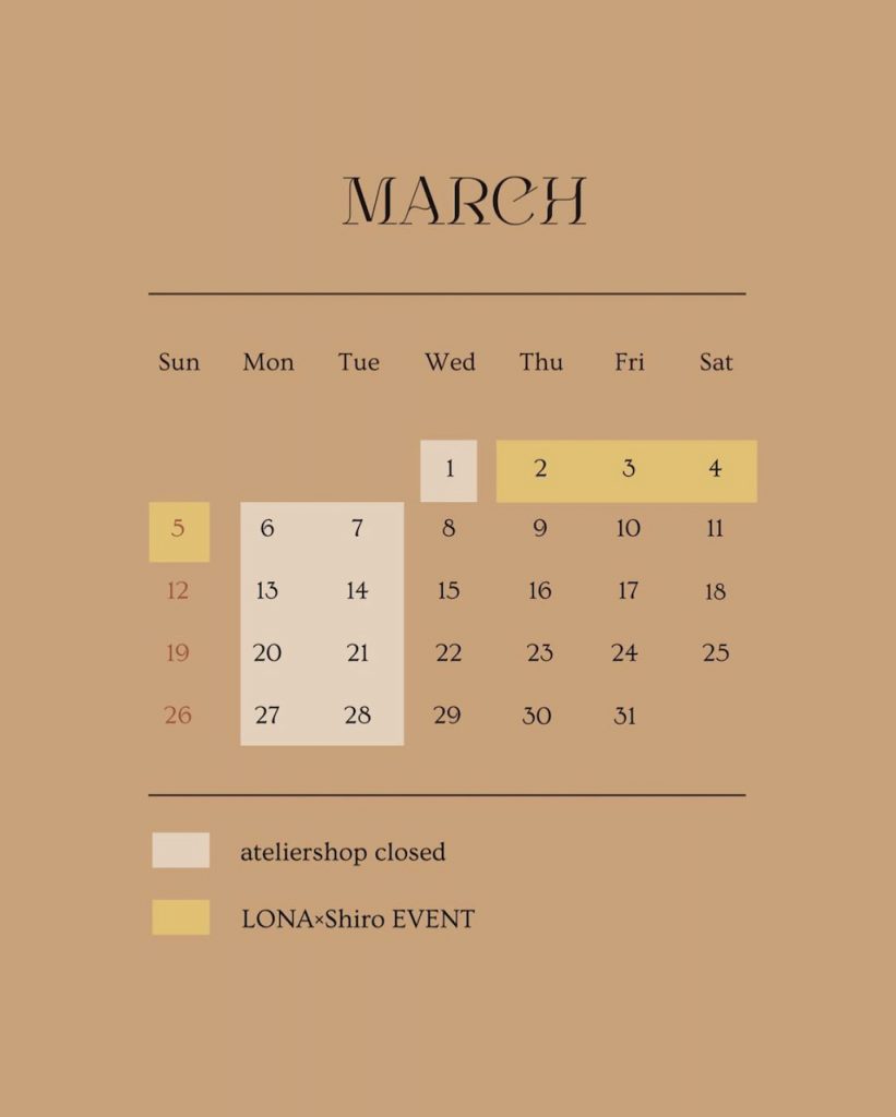 明日からのイベントの為、5日(日)までアトリエショップはお休みとなります。