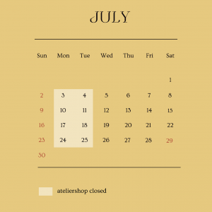 7月のスケジュール 【店舗営業】 平日 14:00-18:00 土日 12:00-18:00 【定休日】月 火 Related Post 2023年9月23日 第2回ワークショップ「レザクラ×インクアート体験」 2023年9月22日 北海道POP UPイベントへお越しいただきまして ありがとうございました! 2023年9月4日 POP UP in HOKKAIDO イベント詳細